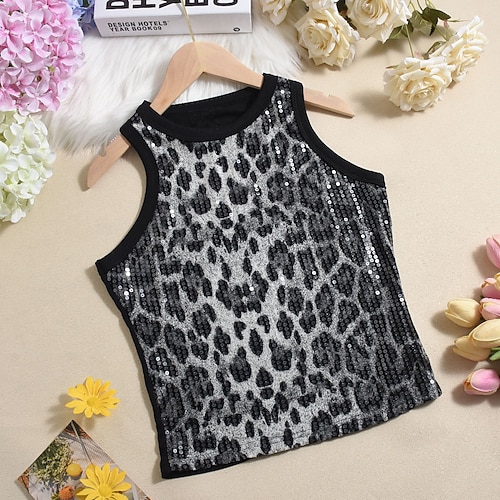 Per donna Top corto avvolgente Leopardo Elegante Casual Senza Maniche All'americana Top Regolari Abbigliamento da sera Quotidiano Ferie Paillettes Fucsia Marrone Grigio Estate Primavera Autunno