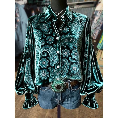 Per donna Camicia Floreale Grafico Paisley Elegante Moderno Casual Manica Lunga Colletto a Camicia Top Regolari Quotidiano Lavoro Abbigliamento da sera Blu Nero Rosso Estate Primavera Autunno Inverno