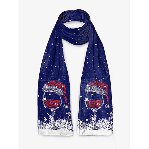 sciarpa natalizia da donna a forma di calice di vino, morbido scialle invernale con stampa di cappello di Babbo Natale, comodo scaldacollo per feste e regali, vari colori