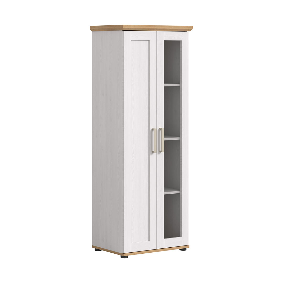 Ikast vitrineskab 2 låger, 3 hylder eg dekor, hvid