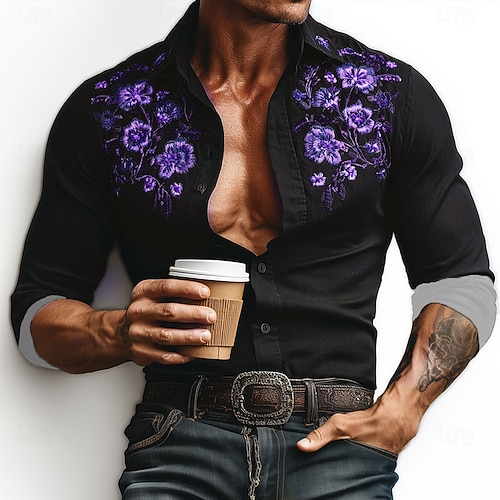 Per uomo Blocco di colori Patchwork Motivo Geometrico Camicia Camicia con Bottoni Manica Lunga Vintage Retrò All'aperto Casual Quotidiano Primavera Autunno Collo ripiegato Stampa 3D Camicia tipo lino