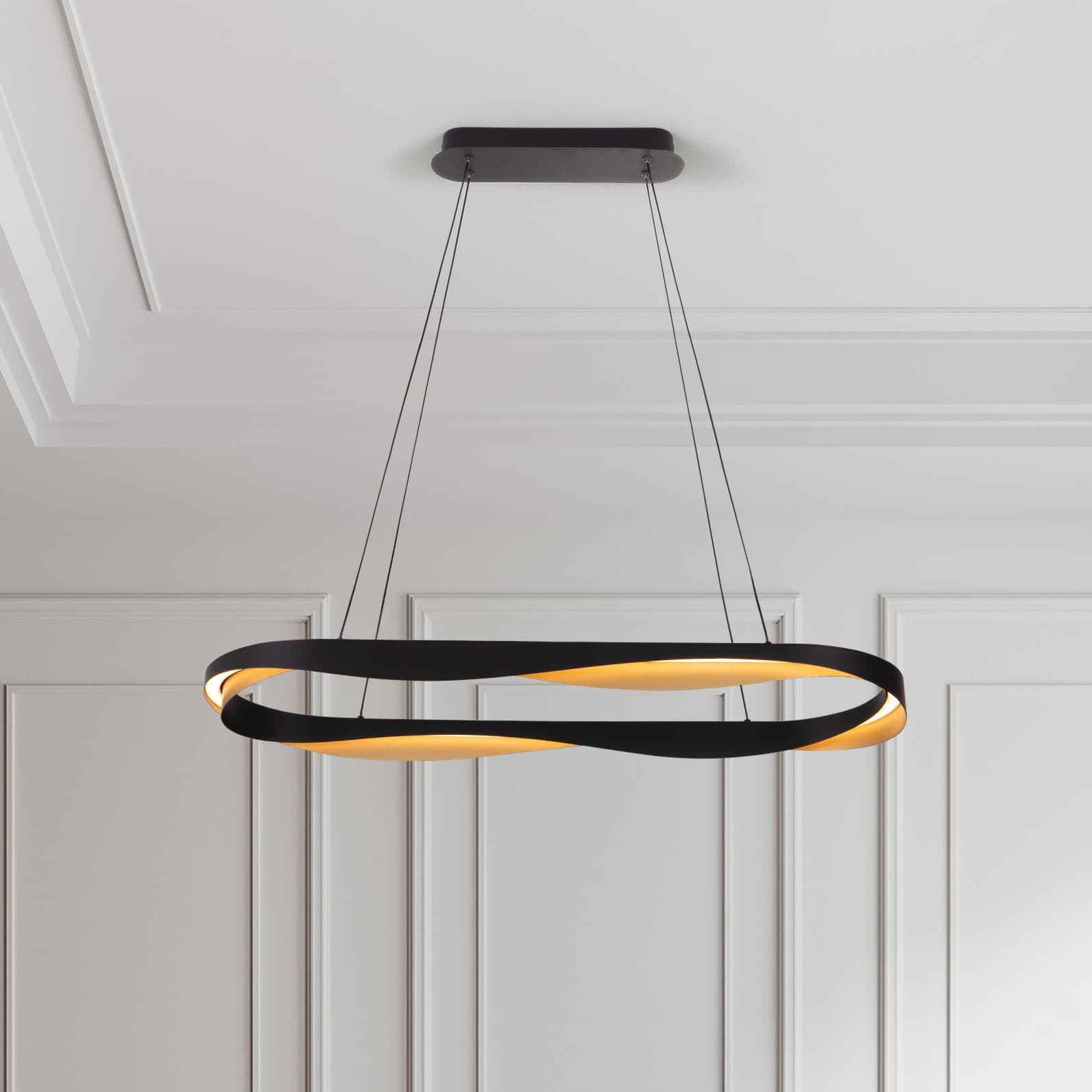 Nova Luce Radon - Hängelampe - Ø 100 x 160 cm - 62W dimmbar LED inkl. - matt schwarz und gold