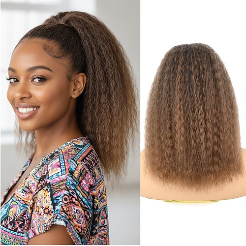 Haarverlängerung mit Kordelzug für schwarze Frauen, 40 cm (16 Zoll), natürlich gewellter, glatter Yaki-Pferdeschwanz aus Kunsthaar, synthetischer Fake-Pferdeschwanz für den täglichen Gebrauch (1b)