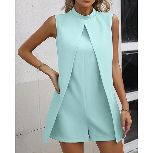 Per donna Pagliaccetto Attivo Tinta unica Senza Maniche Pantaloncini larghi Collo alla coreana Patchwork Quotidiano Vacanza Vestibilità regolare Nero Bianco Verde chiaro Estate