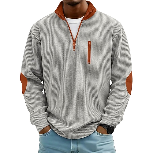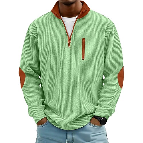 Per uomo Maglia Felpa con zip corta Nero Verde militare Blu marino Cachi Grigio Mezza zip Blocco di colori Cerniera Tasca A coste Sport Outdoor Quotidiano Ferie Poliestere Streetwear Essenziale