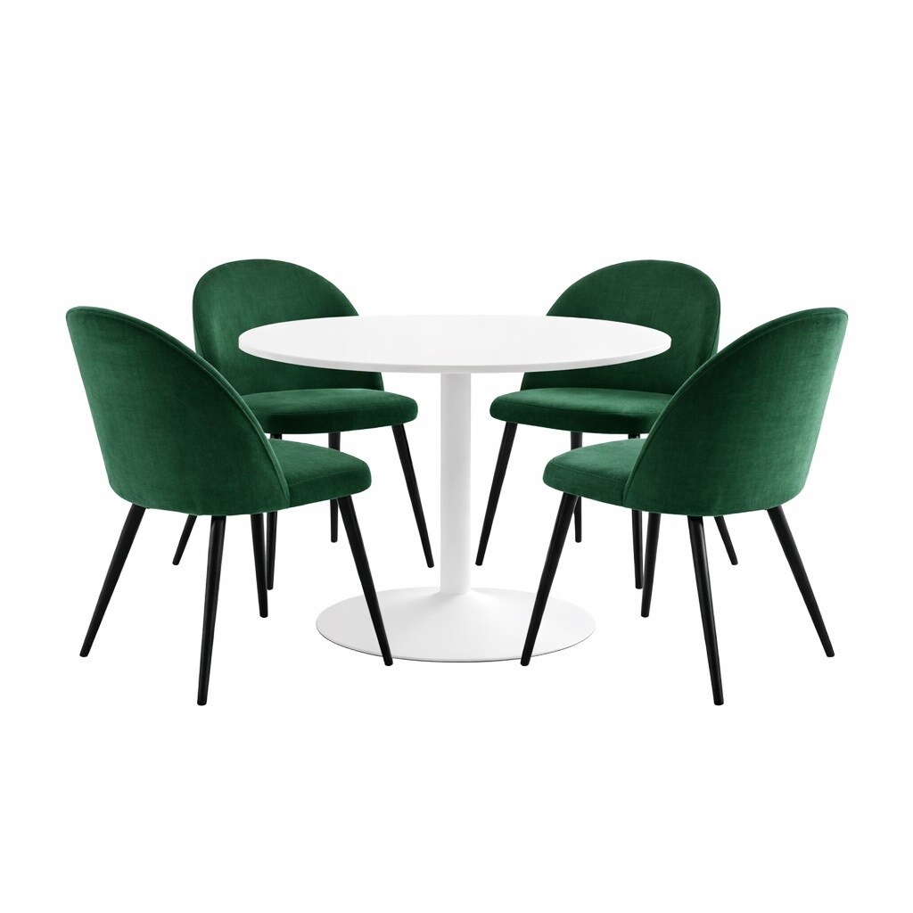 Ebuy24 Carry Essgruppe Tisch Ø110cm, 4 Stühlen Velour grün.