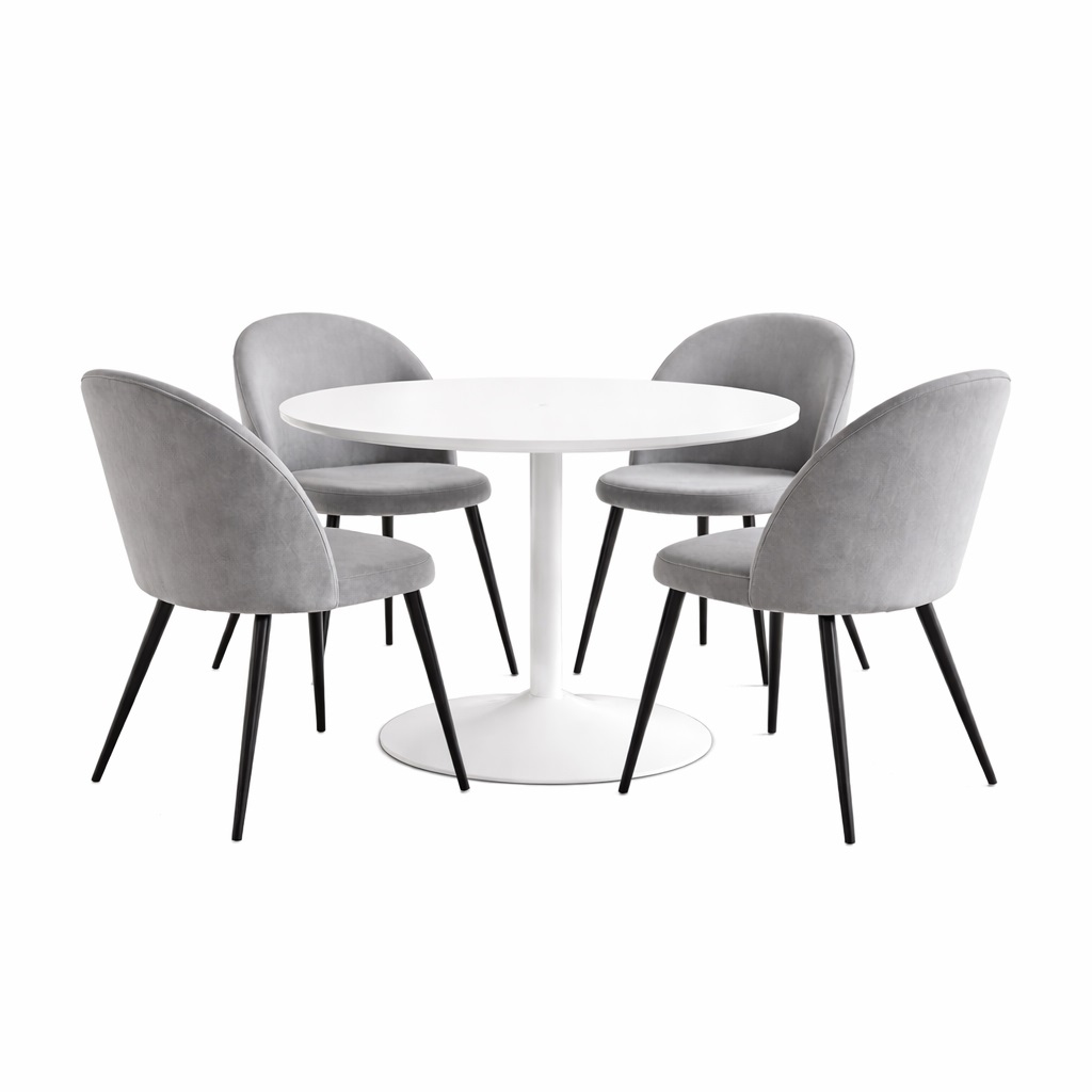Ebuy24 Carry Essgruppe Tisch Ø110cm, 4 Stühlen Velour grau.