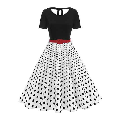 Elegante Classico Anni 1950 Midi Abito a Linea Abito Swing Vestito Svasato Maniche corte Pois Linea ad A Costume Per donna Carnevale San Valentino Mascherata Vacanza Abbigliamento Quotidiano Addio al