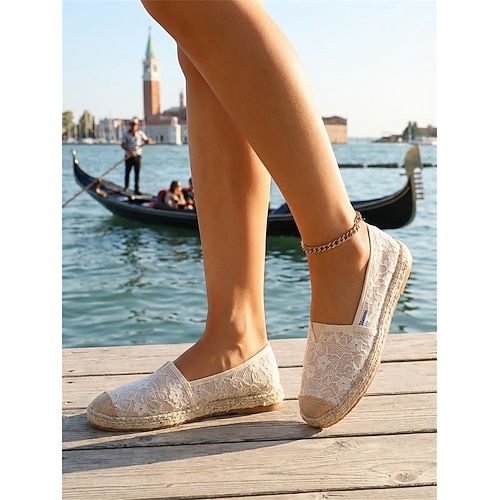 Espadrillas basse in pizzo bianco da donna: eleganti scarpe slip-on traspiranti in stile isola tropicale per crociere nel Mediterraneo e vacanze in resort sulla spiaggia