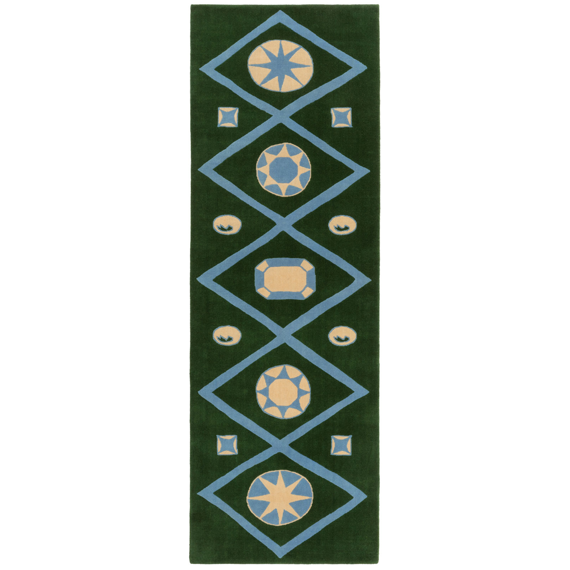cc-tapis - Jewelled Lattice Runner – Forest Green / Blue / Cream - Mönstrade mattor - Luke Edward Hall - Grön,Beige,Blå