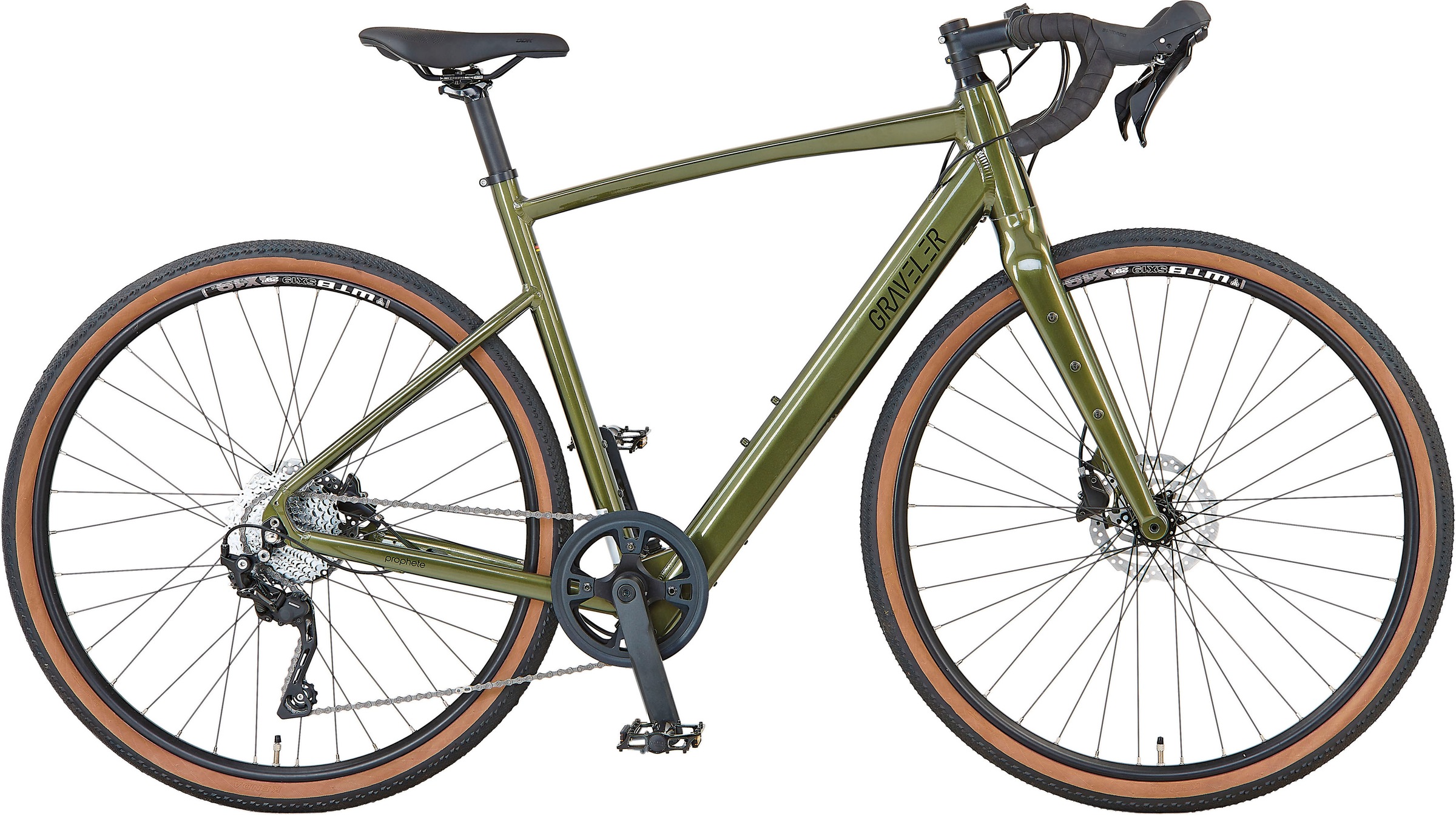 E-Bike PROPHETE "Graveler 1.0" Gr. 53, grün (grün, schwarz), Elektrofahrräder, 53cm, 28 Zoll (71,12cm), Pedelec, Elektrofahrrad für Herren