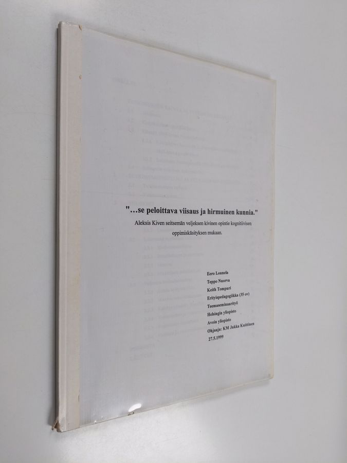 Eero Lounela : " ...Se peloittava viisaus ja hirmuinen kunnia." Aleksis Kiven seitsemän veljeksen kivinen opintie kongnitiivisen oppimiskäsityksen ...