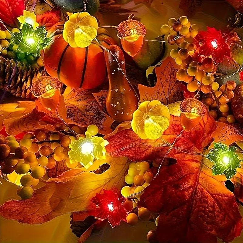 Thanksgiving LED Lighting Autumn Lights 3D Pumpkin Maple Leaf Acorn 2M 20LEDs LED Battery Powered String Lights Halloween Family Garden Terrace Porch Fence Party Decoration