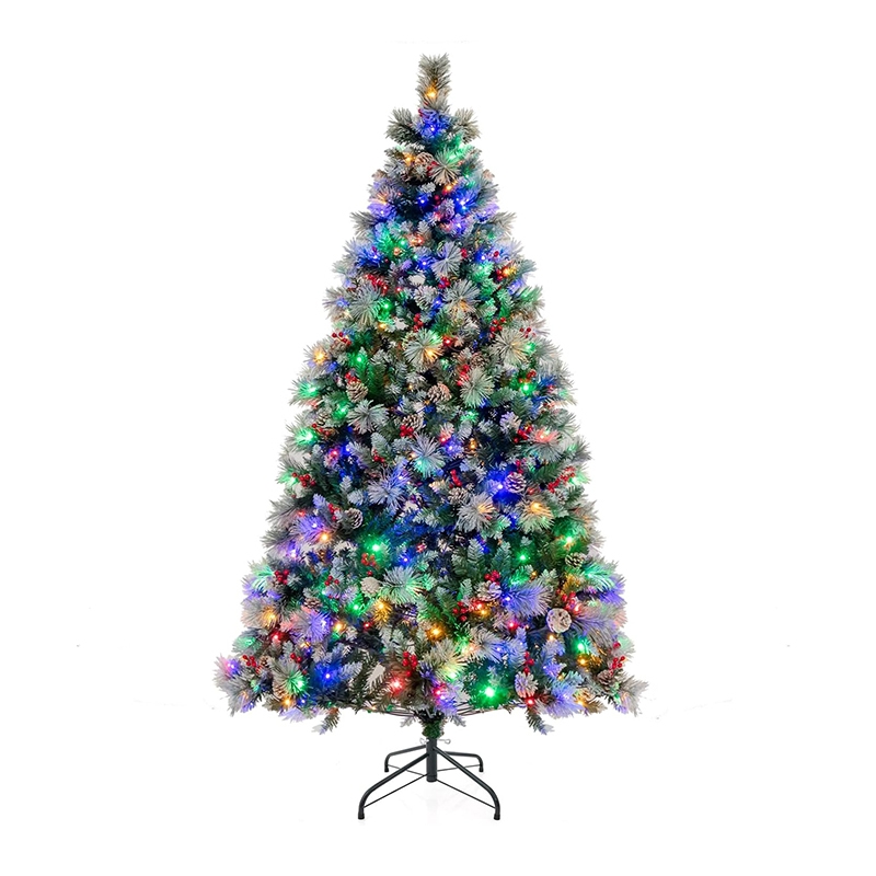 COSTWAY 210 cm LED-Kunstweihnachtsbaum, beleuchteter Weihnachtsbaum mit Tannenzapfen, roten Beeren und Metallständer