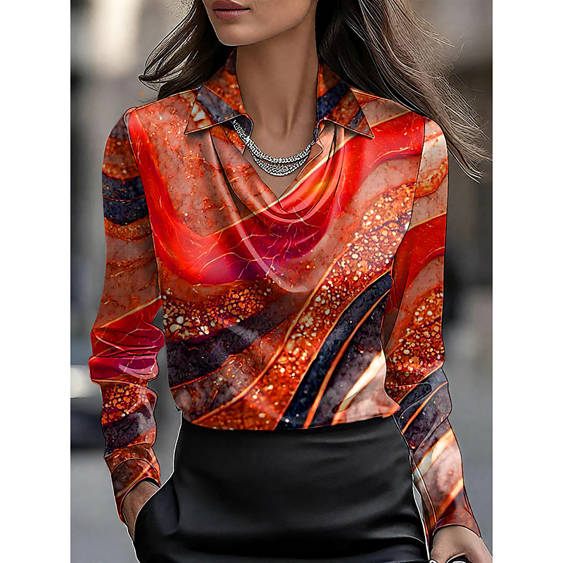 Women's Shirt Dressy Tops Formal Work Shirt Graphic Geometric Abstract Elegant Stylish Casual Long Sleeve Cowl Neck Work Party Evening Wear Daily Ruched Draped Red Blue Purple Orange Green Fall