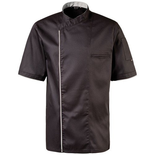 Exner 224 - Kochjacke halbarm, Druckknöpfe, Fb. schwarz mit farbiger Paspel : silbergrau 65% Polyester 35%Baumwolle 220 g/m² 3XL