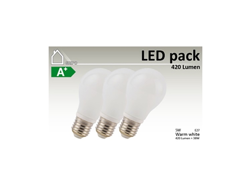 GRIPO GRIPO LED pære A55 E27 5W CRI80 3stk 3000K 420Lm >300gr. 55x100 2835SMD 10stk