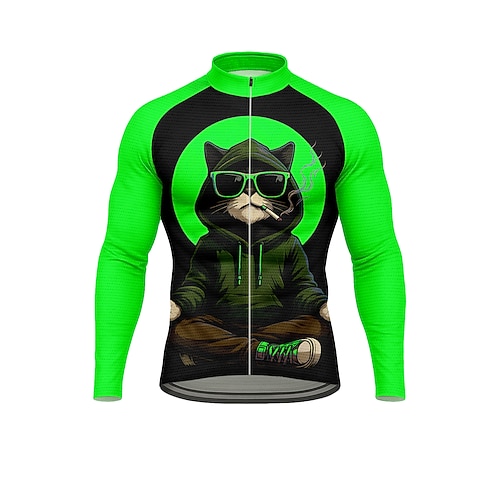 Per uomo Top Maglia da Ciclismo Animale Gatto Manica Lunga Bicicletta Maglia Top con 3 tasche posteriori Sole Protezione Solare Protezione solare Asciugatura Rapida Gli sport Nero Rosa Blu reale
