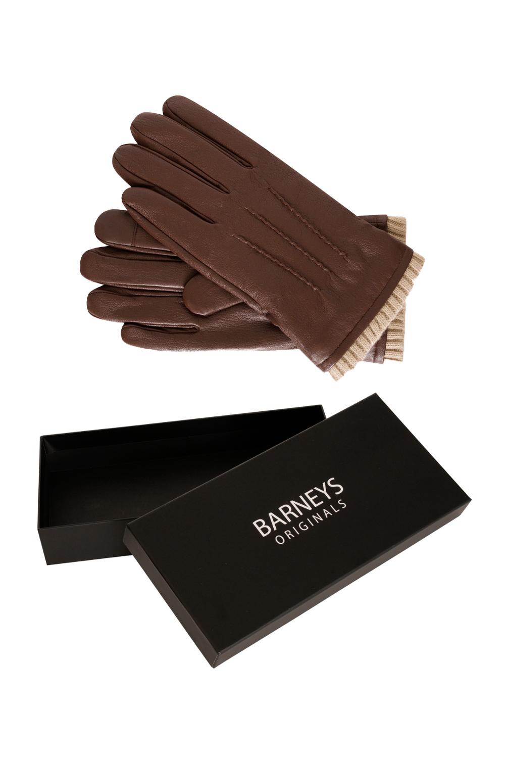 Barneys Originals Mens Gift Boxed Brown Goat Leather Glove With Cream Knit Cuff - Size Medium/large