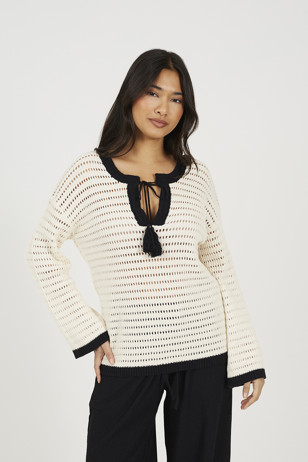 Gini London Womens Cream Side Contrast Bow Oversized Jumper Top - Size Medium/large | Gini London Sale | Discount Designer Brands