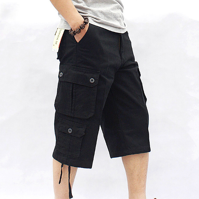 Men's Capri Cargo Shorts Leg Drawstring Multi Pocket Plain Calf-Length Streetwear Classic Style Black Army Green