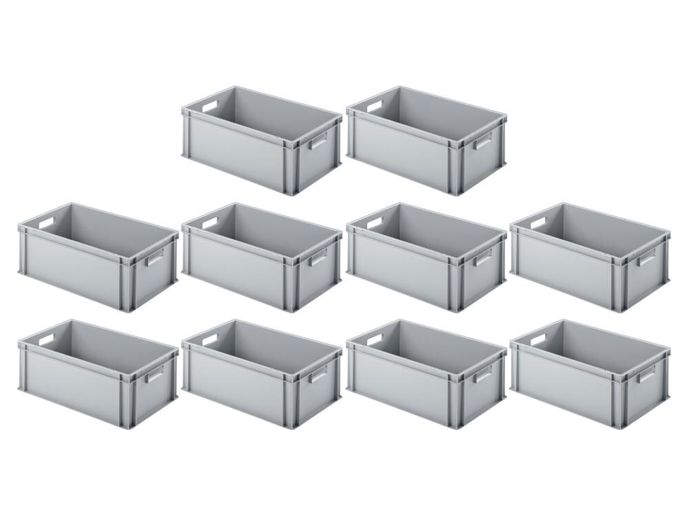 PROREGAL 10x Eurobehälter mit offenem Griff | HxBxT 22x40x60cm | 38 Liter | Grau | Eurobox, Transportbox, Transportbehälter, Stapelbehälter