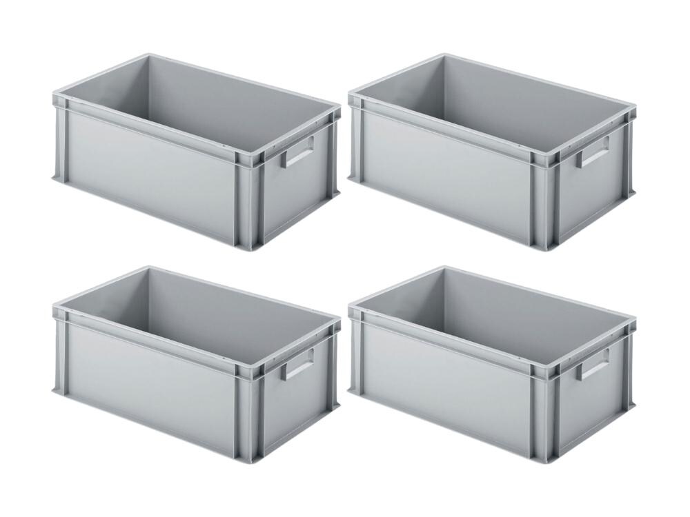 PROREGAL 4x Eurobehälter mit geschlossenem Griff | HxBxT 22x40x60cm | 38 Liter | Grau | Eurobox, Transportbox, Transportbehälter
