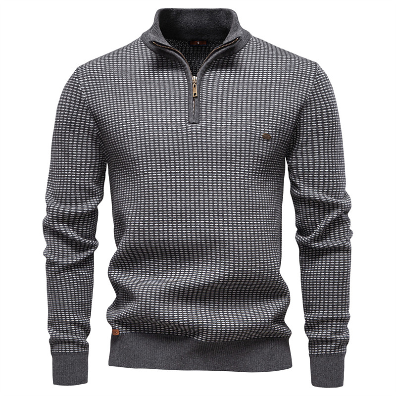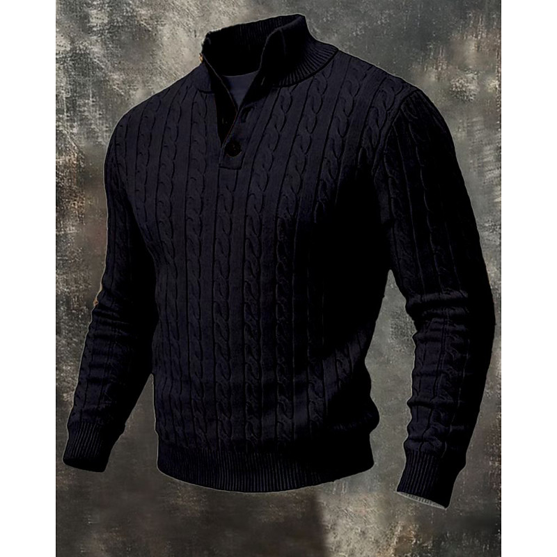 Men's Pullover Cable Knit Regular Tops Half Zip Color Block Geometric Standing Collar Elegant Cool School Vacation Clothing Apparel Spring Fall Black Brown S M L