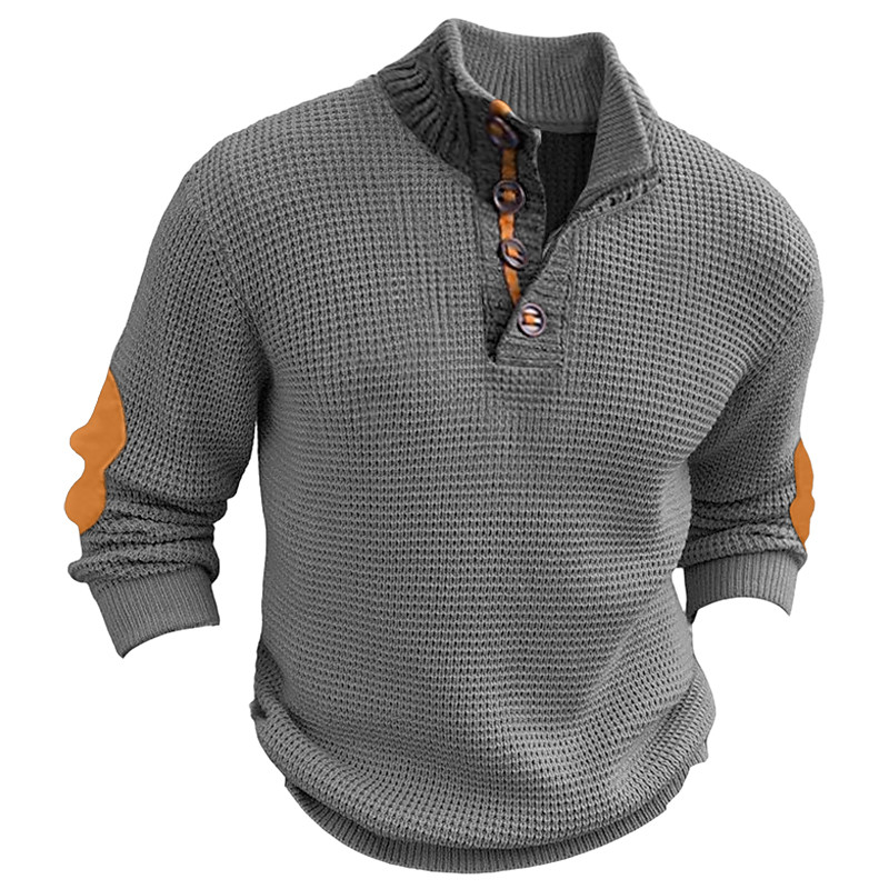 Men's Pullover Sweater Jumper Cable Knit Sweater Patch Sweater Ribbed Knit Regular Knitted Plain Stand Collar Vintage Keep Warm Daily Wear Going out Clothing Apparel Fall Winter Black Blue M L XL