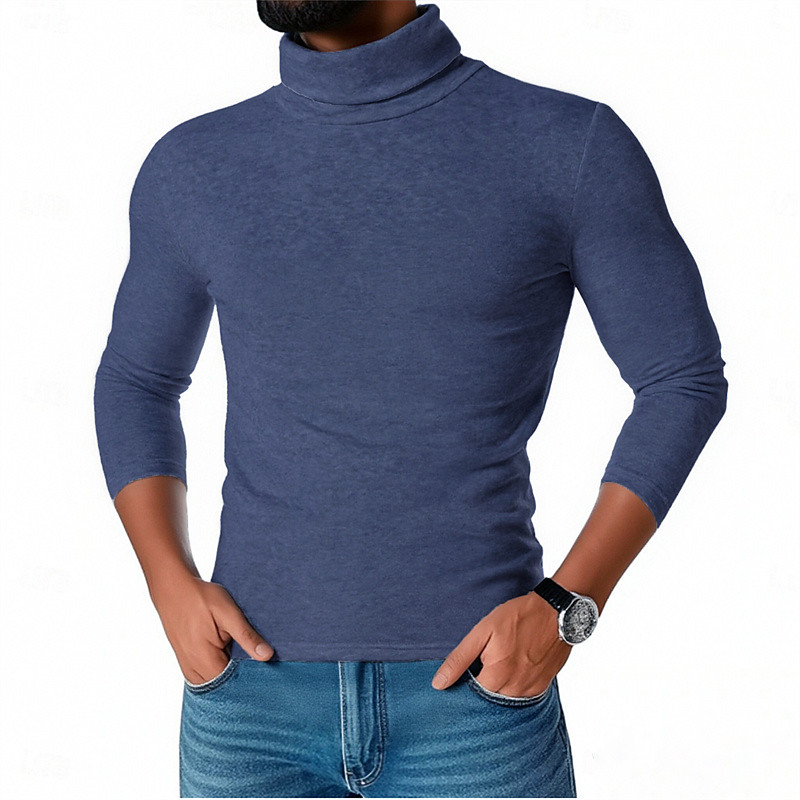 Men's Sweater Pullover Sweater Jumper Knit Sweater Ribbed Knit Regular Tops Knitted Solid Color Turtleneck Fashion Streetwear Daily Wear Going out Clothing Apparel Fall Winter Blue Black S M L