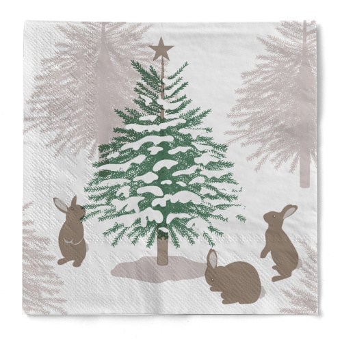 Cocktail-Serviette "Tree Rabbit" aus Tissue 3-lagig, 25 x 25 cm, 20 Stück