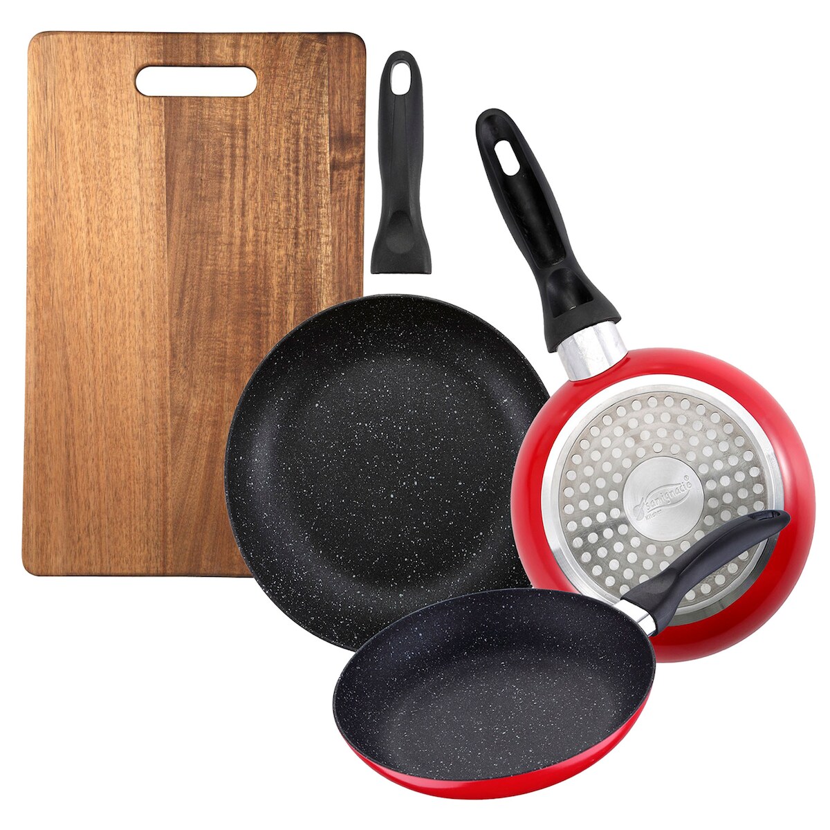 BERGNER - Set aus 3 Pfannen mit Marmorbeschichtung Ø16/Ø20/Ø24 cm Schneidebrett 40,3x25,2x2,5 cm aus Holz