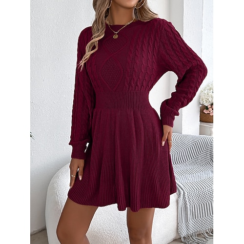 Per donna Mini Abito Abito in maglia Elegante Moda Moderno Quotidiano Uscire Weekend Vestibilità regolare Semplice Manica Lunga Collo Alto Rosa Verde militare Grigio Primavera Autunno Inverno