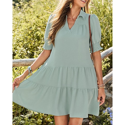 Per donna Mini abito Abito casual Abito linea A Moda Essenziale Informale Da mare Giornaliero Standard Liscio Manica corta A V Nero Rosa Verde Estate Primavera