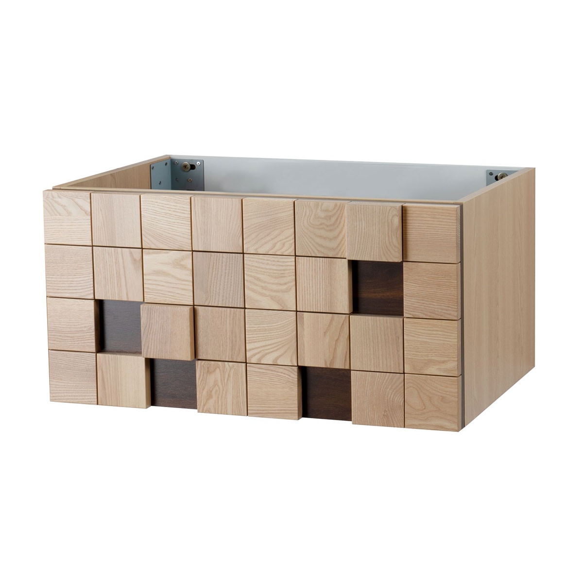 Belvit MOVEA Waschtischunterschrank 80cm 1 Schublade Grifflos Softclose Helle Eiche Blockmuster Multiplex Eschenfurnier