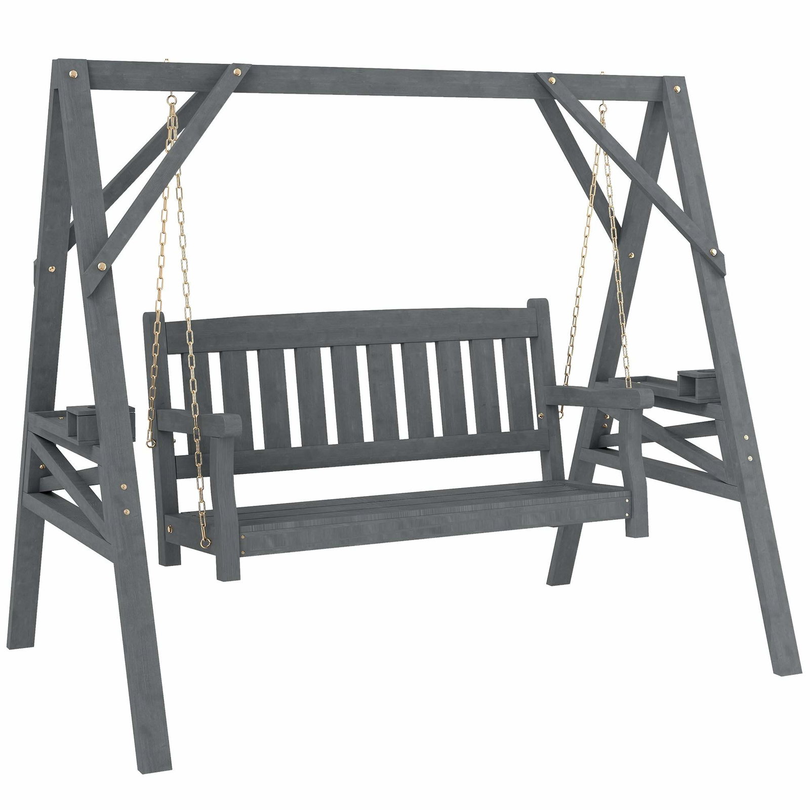 2-paikkainen puutarhakeinu hyllyillä ja mukitelineillä