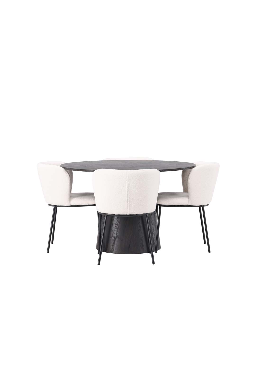 Lanzo spisebordssæt bord mocca og 4 Edina stole hvid