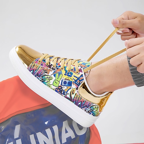 sneakers metalliche multicolor da uomo con design grafico: calzature alla moda per persone alla moda, eventi casual e street style