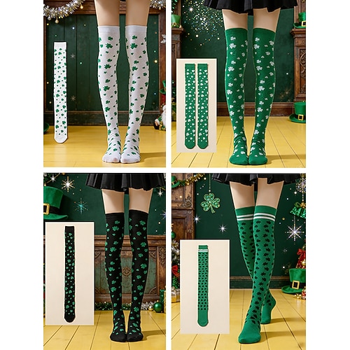 Damen-Kniestrümpfe zum St. Patrick's Day (4er-Pack) – grünes Kleeblatt gestreifte Overknee-Socken, festliche irische Kostümstrümpfe für Paraden, Partys Feiertagsfeier