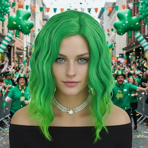 Parrucche Verdi di San Patrizio 2026 Parrucca di Carnevale Verde Ombre Riccia e Ondulata Parrucca Sintetica Corto per Feste Costume Cosplay per Donne