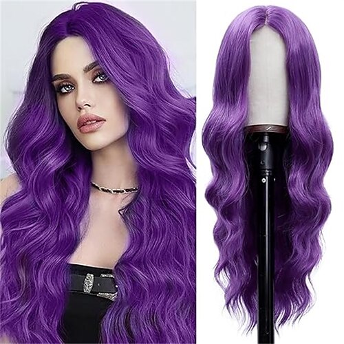 Parrucca di Carnevale Rosa Rosso Viola Riccio Ondulato Lungo Parrucca sintetica da festival Martedì grasso Parata Capelli per costumi da cosplay per Da donna