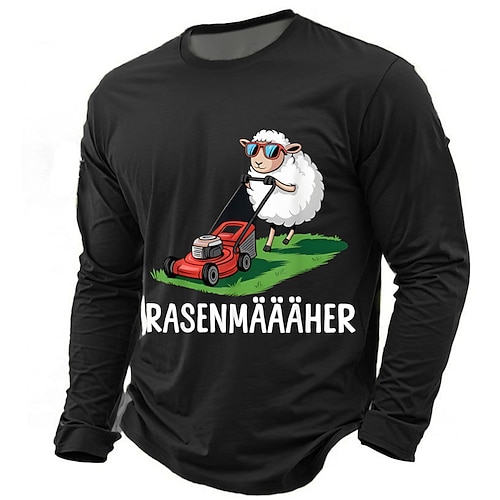 Maglietta a maniche lunghe divertente per uomo Rasenmäähher - Maglietta grafica germanica con pecora tosaerba