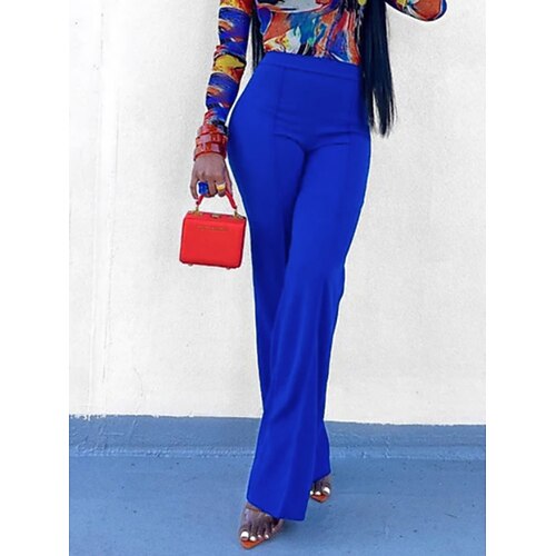Per donna Gamba larga Pantaloni Pantaloni a Zampa Pantaloni casual Vacanza Moda Streetwear Lungo Vita Alta Semplice Elastico in vita Confortevole Micro-elastico Quotidiano Vacanza Streetwear Nero