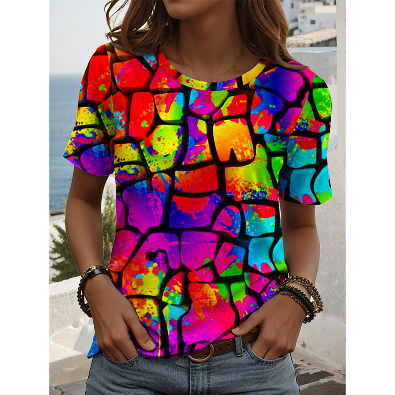 LGBT Pride Parade Pride Raindow Women's T Shirt Graphic Geometric Striped Vintage Stylish Classic Short Sleeve Crew Neck Regular Tops Daily Print Yellow Red Purple Summer Spring
