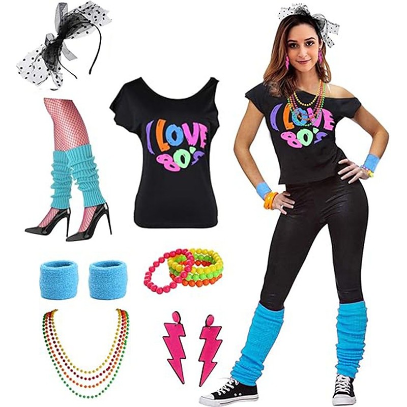 Retro Vintage Disco 1980s Outfits Accessories Off Shoulder T-Shirt I Love the 80's Fancy Dress Women's Masquerade Party / Evening Pride Parade Pride Month Adults' Costume