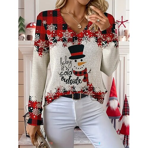 Per donna Felpa Maglione Moda Streetwear Casual Grafico Albero di Natale Pupazzo di neve Scollo a V Oversize Lavorato a maglia Manica Lunga Top Regolari Maglia All'aperto Quotidiano Rosso Primavera