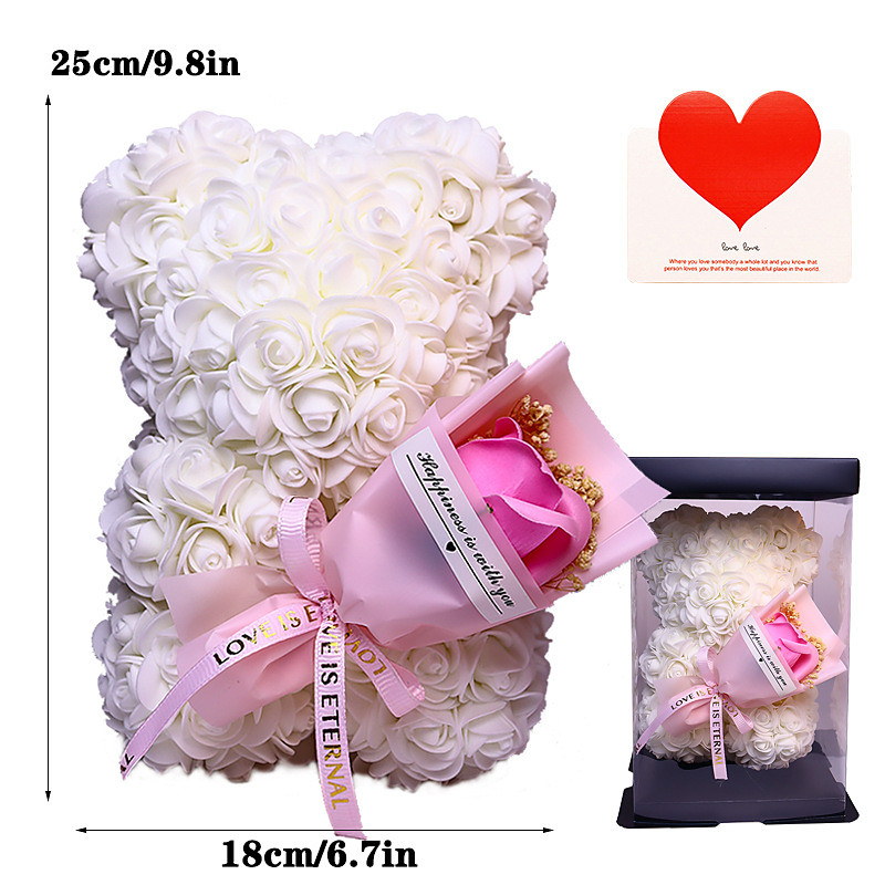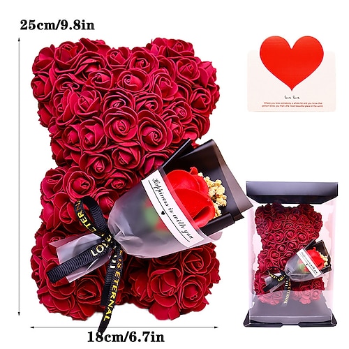 regalo di orsetto di rose per la mamma, ricordo d'amore eterno con rose conservate per sempre confezione regalo, orsacchiotto floreale con rose per donna – regali di anniversario e compleanno per lei