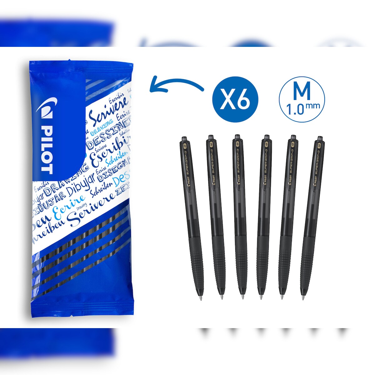 Pilot - Super Grip-G Retractable Ballpoint Pen 1mm - Medium - Black - Pack of 6