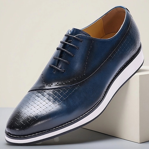 scarpe eleganti da uomo blu con lacci – scarpe Oxford da lavoro in vera pelle con dettagli testurizzati, calzature eleganti per ufficio, feste e occasioni speciali