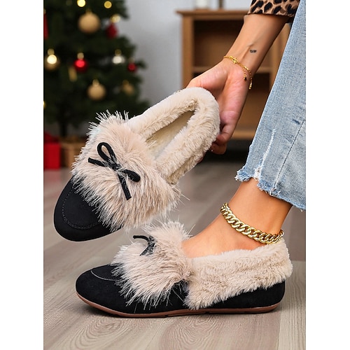 Per donna Mocassini Mocassini classici Scarpe morbide Scarpe Comode Natale Quotidiano Fiocco Tacco basso Punta Tonda Casual Comfort Pelliccia Sintetica Finta pelle scamosciata Mocassino Rosso